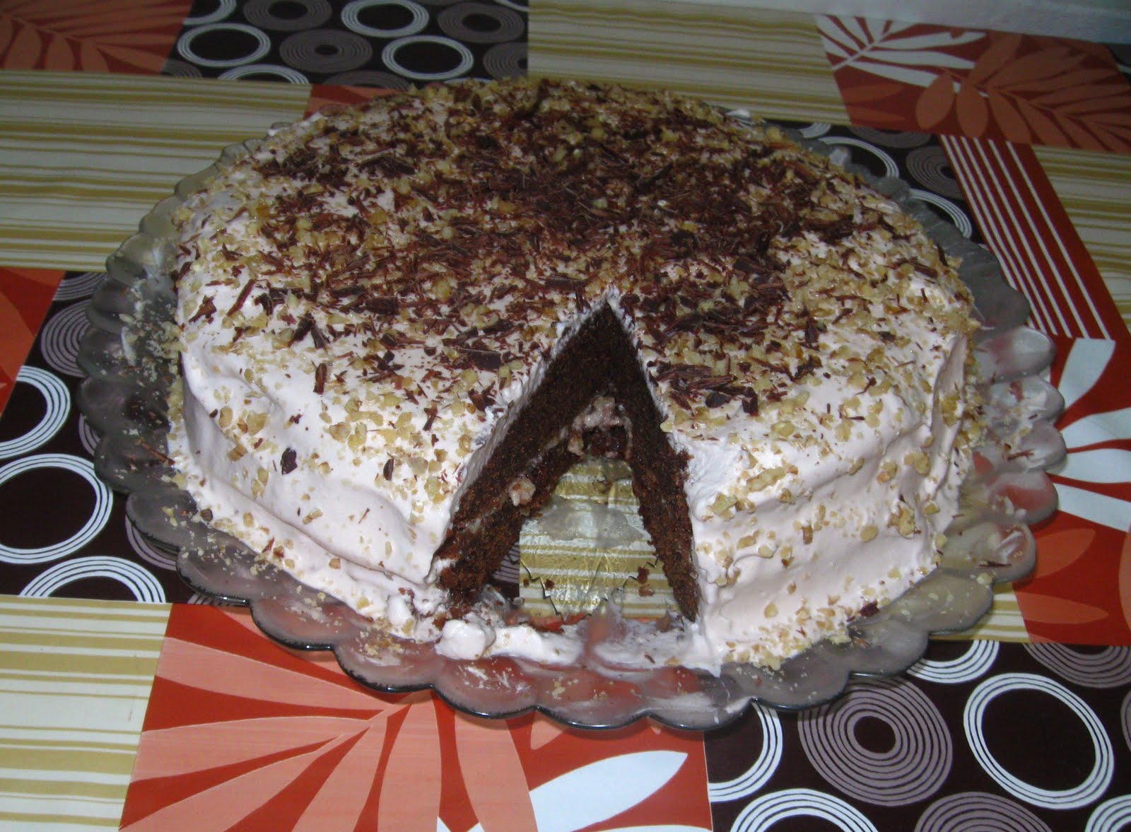 Depois da minha aventura de terça e de muita coisa desperdiçada, eis que na quarta a primeira coisa que fiz ao me levantar foi fazer um bolo. A minha mãe teimava que era da forma e eu teimava que era do forno! Demorou 1,5h a cozer!!!!!!!!!!!!!!!!!!!!!E mesmo assim ainda pregou um pouco no fundo. Não sei mesmo o que se passa mas pelo menos este acertou. Este foi um bolo que já tinha feito e acertou logo à primeira portanto repetiu-o para ter a certeza que era de factores externos à receia. Desta vez o receheio e a cobertura foram os mesmos: